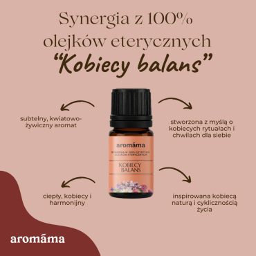 Mieszanka olejków eterycznych „Harmonia cyklu” została stworzona z myślą o najbardziej wrażliwych momentach zmieniającego się kobiecego rytmu – od pierwszych doświadczeń kobiecości w okresie dojrzewania i comiesięcznych wahań ciała oraz emocji, aż po dojrzałość, gdy kobieta odkrywa nowy rytm spokoju i mądrości.
