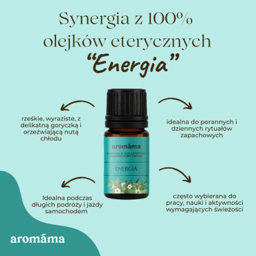 Są dni, kiedy potrzebujesz czegoś więcej niż kolejnej filiżanki kawy – potrzebujesz czystego powietrza w głowie. „Energia” to aromaterapeutyczna synergia, która pomaga obudzić nie tylko ciało, ale i umysł. Została stworzona, by przywracać czujność, pobudzać koncentrację i poprawiać nastrój – dokładnie wtedy, gdy jest to najbardziej potrzebne.