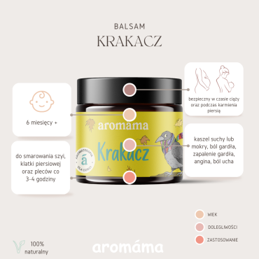 Krakacz to produkt, którego zastąpić sie nie da. Wszystkim go polecam, potem znajomi mi piszą, że działa? Smaruje regularnie stopy córce. Wszelkie przebiegi chorób bez leków, wtedy smaruje także plecki, nie oszczędzam go. Naprawdę jest rewelacyjny, kaszel szybko mija. Krakacz pomógł nam nawet w RSV, wtedy jeszcze nie wiedziliśmy, że go mamy, lecz krakacz razem z sosną, cytryną i odpornością pomógł nam w ekspresowym tempie. Jak już stracę poczucie czasu to jednak wychodzą potówki, warto te przerwy robić.