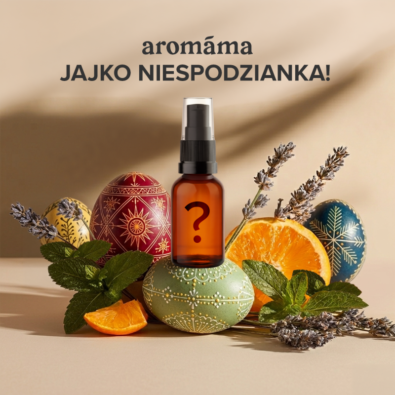 Co się kryje pod jajem niespodzianką? Tym razem to wielka tajemnica, którą odkryjesz dopiero po rozpakowaniu paczki z aromámy. Możemy tylko podpowiedzieć, że w jajku możesz znaleźć m.in. oczyszczającą piankę do twarzy dla skóry suchej i normalnej (30 ml), krem do ciała o zapachu lawendowego miodu (50 ml), mgiełkę nawilżającą do ciała (30 ml), wzmacniające i tonizujące serum olejowe (20 ml czy nawilżający krem do twarzy różany (15 ml).