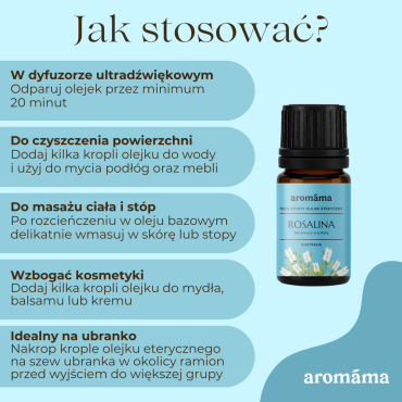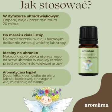 Dla najmłodszych polecamy stosować olejki eteryczne z dala od twarzy i dróg oddechowych. Wystarczy zakropić 1–2 krople na pieluszkę tetrową, fotelik samochodowy lub materiałową część wózka – tak, by zapach był delikatnie wyczuwalny, ale nie bezpośrednio przy buzi dziecka.