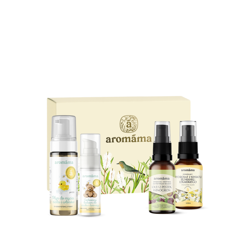 Łagodny rytuał pielęgnacyjny od pierwszych dni życia, idealny dla noworodków i niemowląt, a także świeżo upieczonych mam. Delikatna pianka myjąca oczyszcza skórę i włosy, nie podrażniając wrażliwej cery. Codzienny balsam odżywia i nawilża, a kojący hydrolat z rumianku przygotowuje skórę na aplikację kremu, wspierając komfort i miękkość. Uniwersalny olej z pestek winogron można stosować do masażu, pielęgnacji twarzy czy włosów, odżywiając i zatrzymując wilgoć. Idealny prezent, który łączy troskę o skórę najmłodszych z naturalną pielęgnacją mamy.
